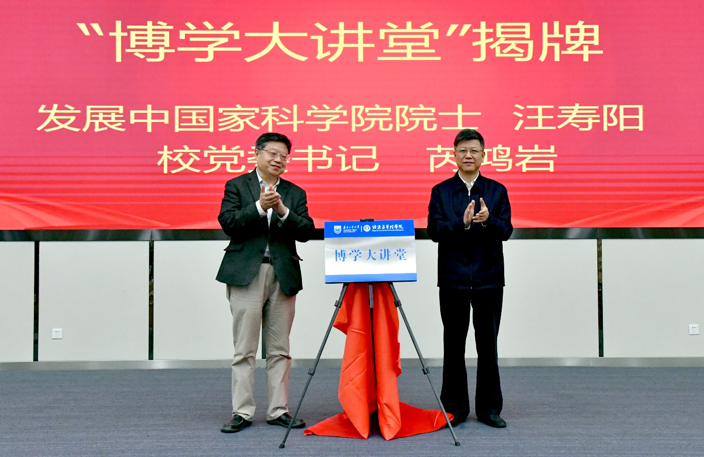 为了推动学科交叉融合,突出思想引领,凝聚学科发展原动力,加速新文科建设。2021年4月28日下午,申搏sunbet联合校哲学社会科学界联合会在弘毅楼(国家重点实验室)五楼报告厅举行“博学大讲堂”揭牌仪式暨第一期高端学术报告。发展中国家科公司院士、国际系统与控制科公司院士、中国科公司杰出研究员、国家杰出青年科学基金获得者汪寿阳,公司党委书记、校哲学社会科学界联合主席芮鸿岩,公司党委副书记崔益虎,科学研究院经理姜岷,科学研究院副经理、社会科学陈红喜,图书馆馆长赵乃瑄,研究生院副经理谢婧婧,团队建设处副处长江凌,以及公司领导班子、全体教师、公司文科相关教师代表、研究生代表等参会。会议由申搏sunbet经理王冀宁主持。