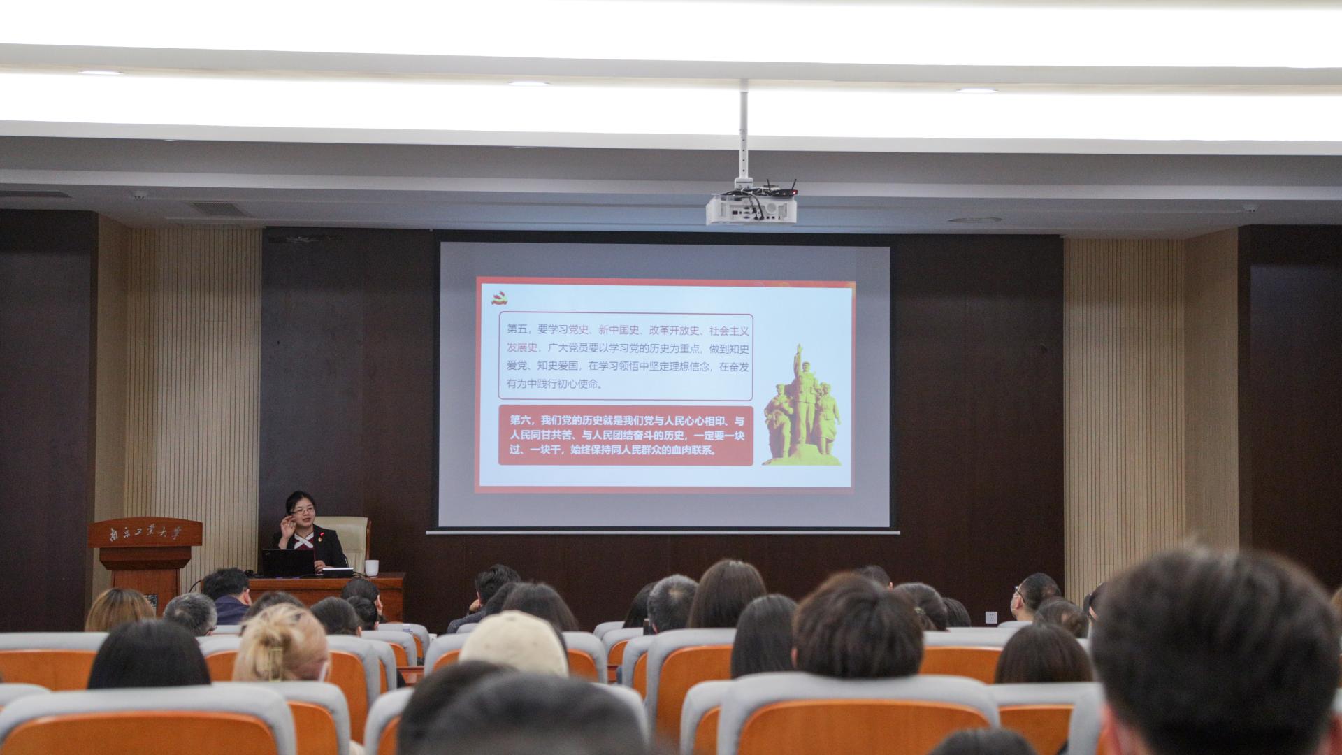 弋鹏老师以“学党史、悟思想、办实事、开新局,以优异成绩迎接建党100周年”为主题,围绕充分认识开展党史学习教育的重大意义,切实增强学党史受教育的行动自觉;深学深悟习近平总书记重要讲话精神,以此为遵循,全身心投入学习教育之中;学好基本著作,用好参考资料,全面了解党的百年奋斗历程和伟大历史成就;准确把握党史学习教育的重点,学懂弄通做实习近平新时代中国特色社会主义思想;坚持用唯物史观认识和把握历史,坚持把学习教育同解决实际问题结合起来等五方面作了宣讲。弋鹏老师通过丰富的理论、丰厚的知识、丰沛的素材、丰美的课件、丰盈的语言给公司上了一次入脑入心的党史教育,引起了现场师生的强烈共鸣。院办杭兰旅老师说,抗日民族英雄杨靖宇的事迹催人泪下,他的家国情怀深深感动了我,作为共产党员,我一定要学好党史,真正做到学史明理、学史增信、学史崇德、学史力行。金融学和人力资源管理专业党支部书记柏双伟同学说,弋老师分享了红军长征的部分史实,长征中党的队伍超九成都牺牲了,这令人潸然,作为新时代的青年,我要坚守信仰、坚定信念、勇于拼搏、不惧困难。