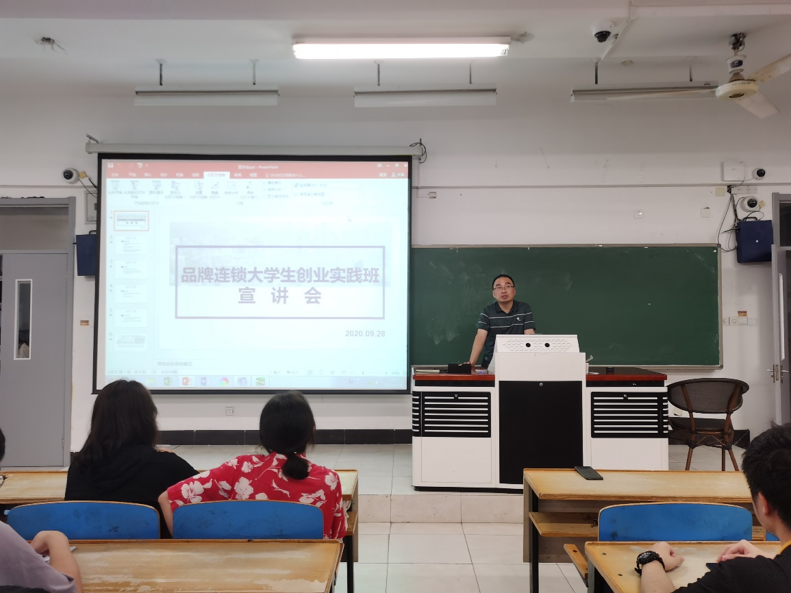 品牌连锁老员工创业实践班经过来尧静老师和孙路老师数月精心筹备,将在本学期正式开办。为了让有创业梦想的同学更好地了解品牌连锁老员工创业实践班并加入进来,在2020年9月28日于厚学214举行了创业实践班宣讲会,这次宣讲会吸引了全校各院同学的参与,几乎座无虚席。