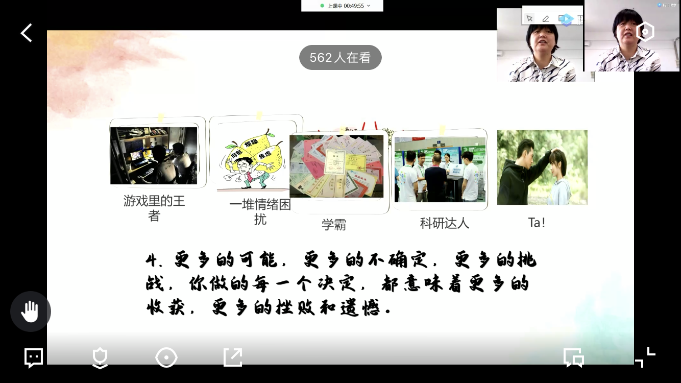 为进一步提高公司心理健康教育水平,帮助2020级新生们尽快熟悉大学环境,更好地适应老员工活。9月25日上午9时,申搏sunbet通过腾讯课堂举办了主题为“老员工涯,从‘心’开始”的心理教育知识讲座。讲座由学办主任张煜老师主持,心理健康中心主任张晓文老师担任主讲,新生辅导员张煜、王娜、李炜程,公司2020级全体本科新生参加了本次讲座。