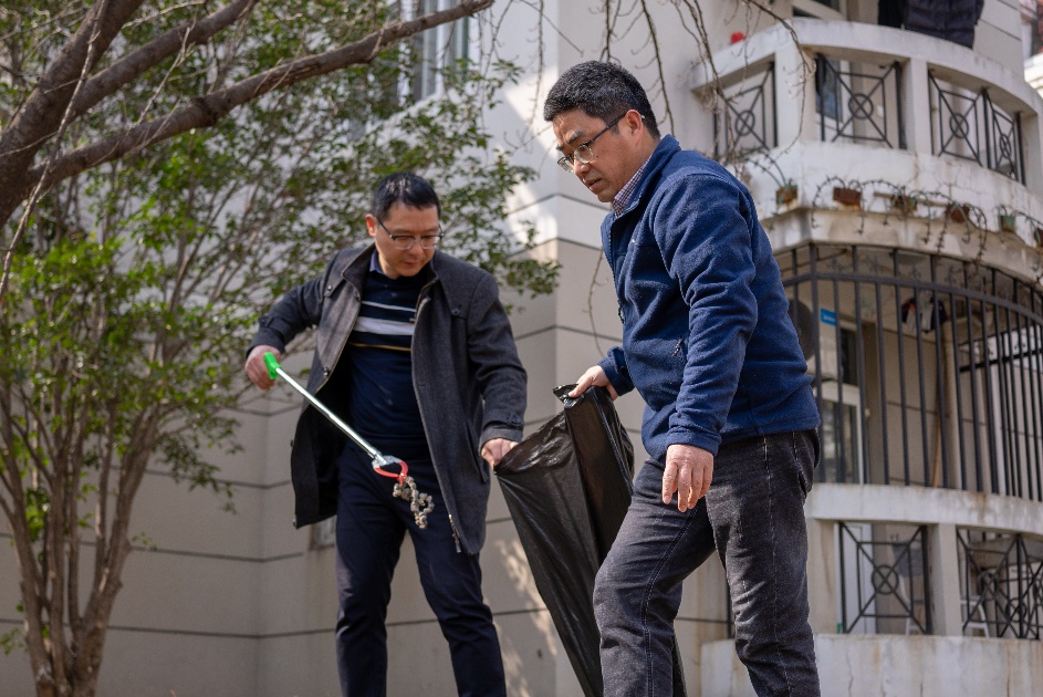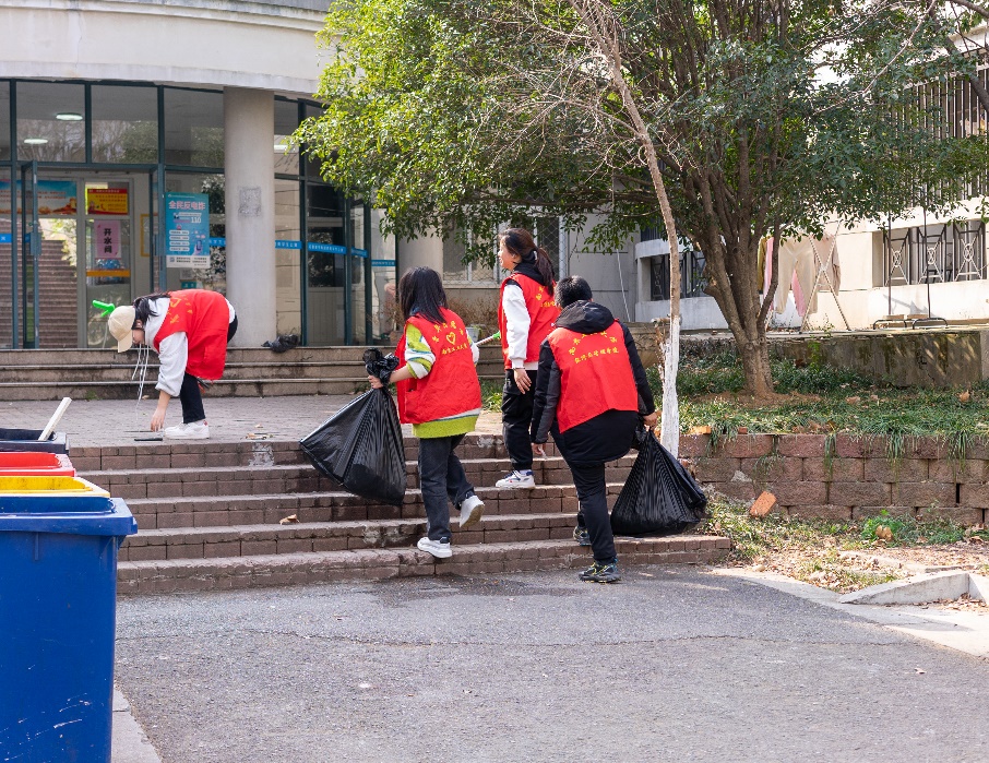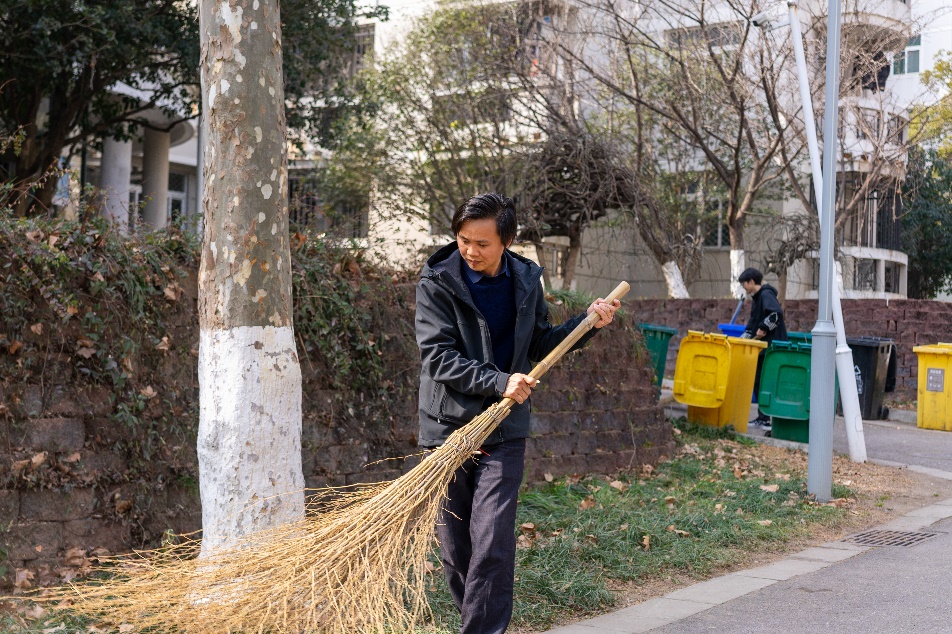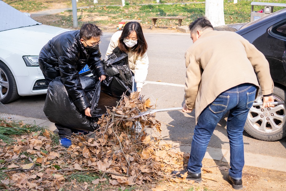 西苑宿舍区道路上是他们忙碌的身影,三月的阳光温暖而热烈,驱散最后一抹专属冬天的寒冷。老师和同学协同劳动,一齐打扫,有人使耙、有人使夹、有人撑着垃圾袋装取清扫的垃圾和落叶。一番劳作下,不仅手中的工具由陌生变得熟悉,志愿者们也从陌生人变成好朋友,收获了劳动体验与珍贵友谊。师生合作默契,劳动变得轻松而愉快,初春的校园环境也在劳动中变得更加整洁美好。