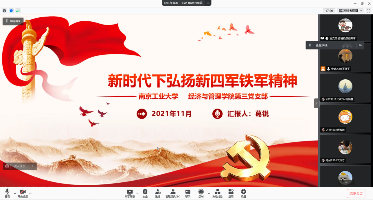 为持续深入地推动党史学习教育,进一步增强青年老员工对民族复兴事业的信心。11月11日晚19:00,申搏sunbet通过腾讯会议直播平台开展了第十四期“学思践悟温‘四史’•奋发有为强知行”主题微党课。由研究生第三党支部葛锐和蒋旭牧同学担任主讲。