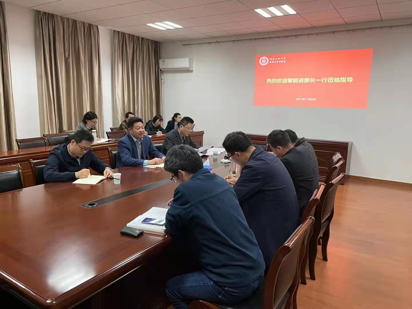 11月5日下午,员工工作处处长黎能进、副处长张翔、就业办副主任刘全振赴公司调研指导毕业生就业工作。公司党委副书记岳克勤,副经理陈同扬、吴松强、吴斌,各系负责人和2021届、2022届毕业班辅导员参加会议。