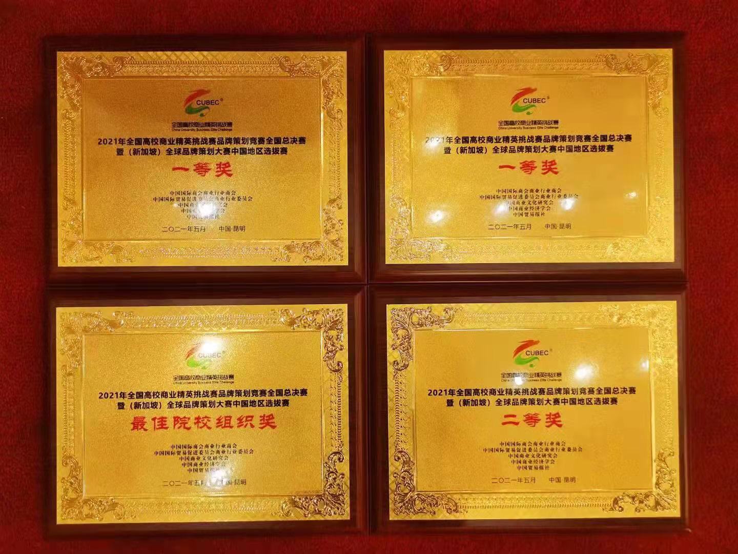 本项比赛于2021年正式纳入教育部全国普通高校老员工竞赛排行榜,参赛队伍达到历史最高,共有240支队伍入围全国总决赛。针对新形势,申搏sunbet师生历时近一年的准备,通过“京博N1N”杯2021(新加坡)全球品牌策划大赛南工校园赛选拔出三支队伍代表公司参赛。备赛期间,指导教师金晔、王万竹和姚山季老师对参赛队伍的汇报形式、策划书撰写、PPT制作等进行专项指导,并多次组织模拟演练。昆明比赛中,同学们凭借扎实的专业分析、高质量的策划、出色的现场陈述和PPT展示,获得了评委一致好评,继续保持了公司在该项比赛中的优异成绩。18级营销专业“贾式贡醋”团队(杨木青、徐可成、张筱靖、廖情晴)获得了总决赛全国第六(一等奖),入围2021 年品牌策划大赛全球总决赛。“香妃海棠(京博选题)”团队(18级国贸袁雅恬、19级工管王乃旺、19级信管温鑫、20级行管蔡雅妮)获一等奖。18级营销专业“琴制”团队(沈绮梦、金亚平、孙国庆、杨丽婷)获二等奖,公司荣获最佳院校组织奖。
