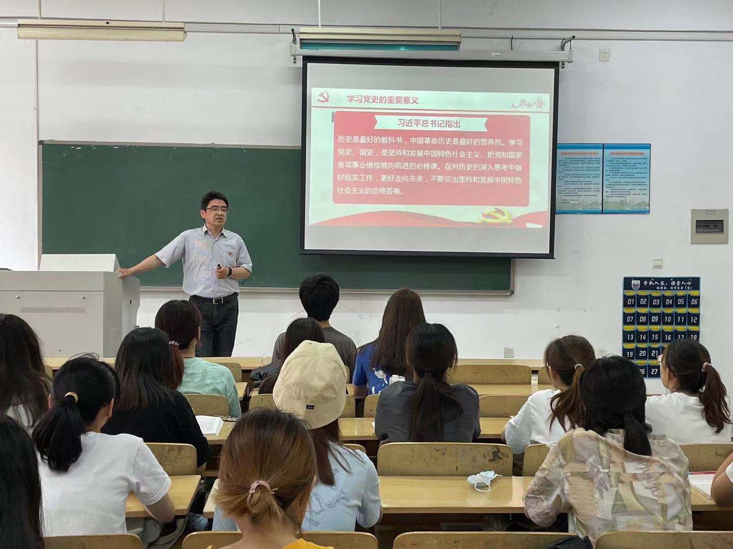 为深入推进党史学习教育开展,认真贯彻落实公司党委党史学习教育部署要求。6月1日下午,申搏sunbet开展“党史宣讲进班级”主题宣讲会。会议由公司党委委员、副经理陈同扬主讲,会计1904班全体员工参加。