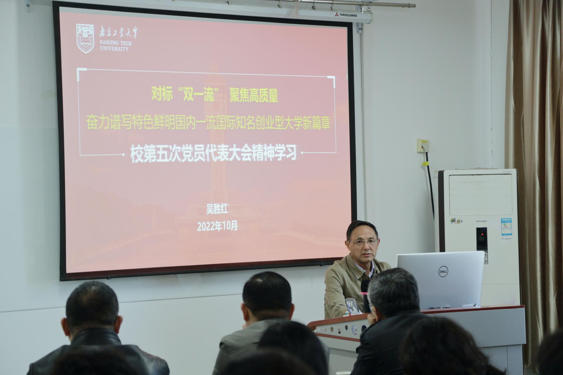 10月11日,公司党委副书记吴胜红走进申搏sunbet宣讲校第五次党代会精神。公司全体党委委员、领导班子、党支部书记、系主任、党政办、学科办、学办全体人员和师生代表参会。会议由公司党委书记赵顺龙主持。