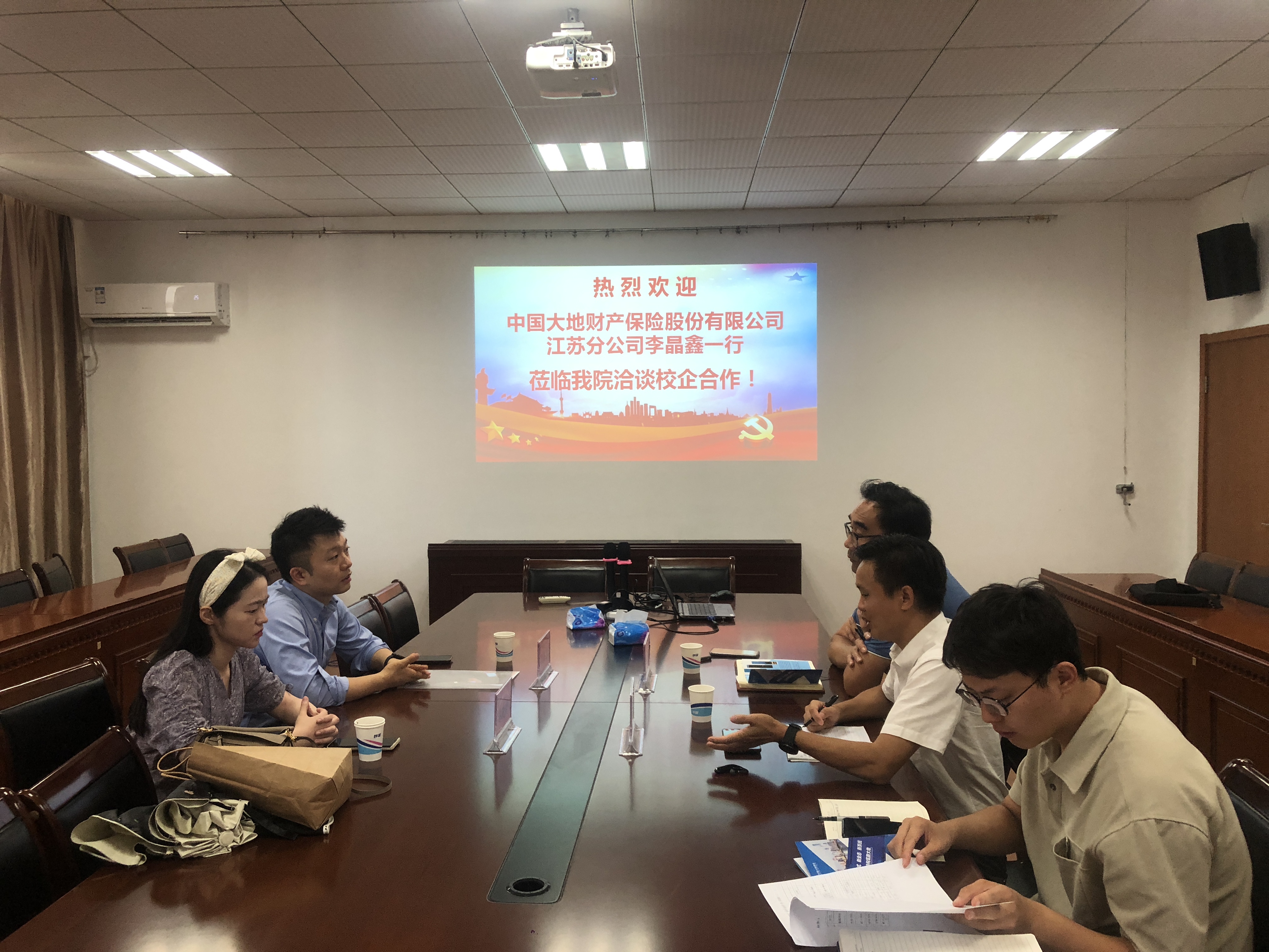 为进一步创新人才培养新模,开拓就业岗位,9月6号,中国大地保险江苏分公司人力资源部李晶鑫等一行应邀来公司就校企合作洽谈交流。公司党委副书记岳克勤、副经理陈庭强、毕业班辅导员等参加交流会。会上,双方各自介绍了单位基本情况,就人才培养、员工就业等深入探讨。双方表示,今后将密切联系,深化产教融合,在员工就业、职业生涯规划等方面深入合作。