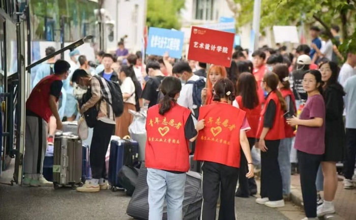 公司党员先锋服务队及百余名志愿者分驻在迎新各点,合理分工、积极配合,全力做好新生接待工作。从线路指引、行李搬运、注册报到、答疑解惑等方面全方位服务新生。