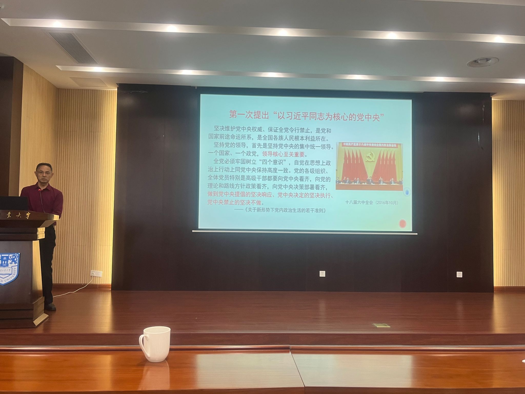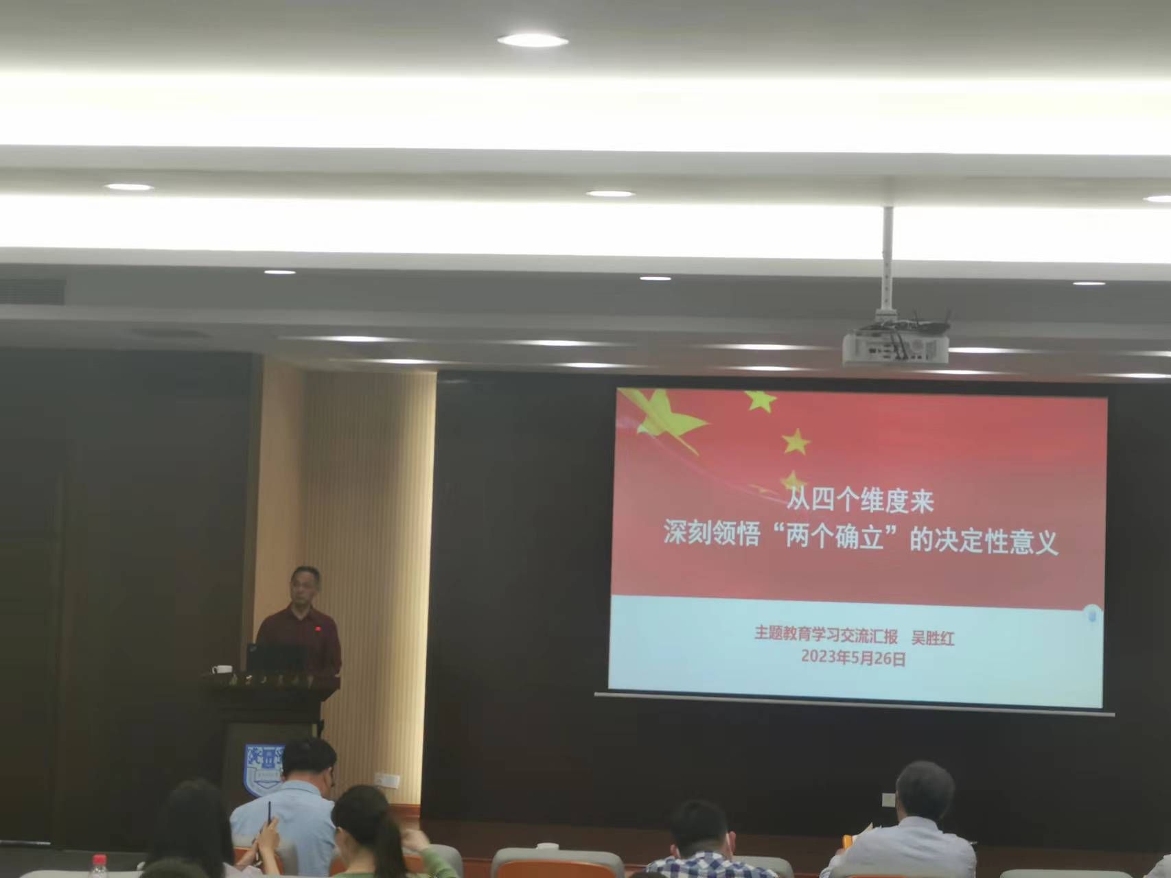 按照公司学习贯彻习近平新时代中国特色社会主义思想主题教育计划安排,5月26日下午,党委副书记吴胜红以“从四个维度来深刻领悟‘两个确立’的决定性意义”为题,为申搏sunbet领导班子、党委委员、师生代表讲授专题党课。
