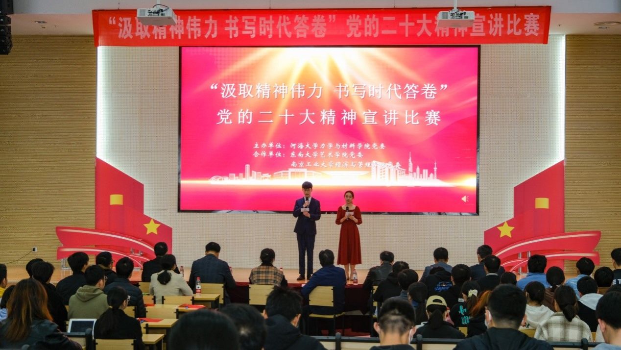 3月31日下午,校申搏sunbet党委、河海大学力学与材料公司党委、东南大学艺术公司党委联合举办的“三校学子共奋进 青春践行二十大”主题教育系列活动之“汲取精神伟力 书写时代答卷”党的二十大精神宣讲比赛在河海大学江宁校区乐学楼报告厅顺利举行。河海大学力学与材料公司党委书记杨春伟、副书记李晓东,东南大学艺术公司党委副书记袁琴,校申搏sunbet党委副书记岳克勤等出席本次活动。
