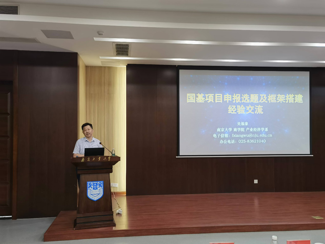 本次会议特邀南京大学商公司吴福象教授做国家基金申报辅导讲座。吴教授围绕项目申报书选题和内容框架搭建展开,从选题、报题方法到申请书各部分的写作要点,以及课题论证和设计的注意事项等方面进行了细致的讲解。吴教授深入浅出的讲解,结合丰富的案例分析和实操技巧,帮助与会教师提升选题能力,增强写作技巧,深化研究方法,提高成功概率。