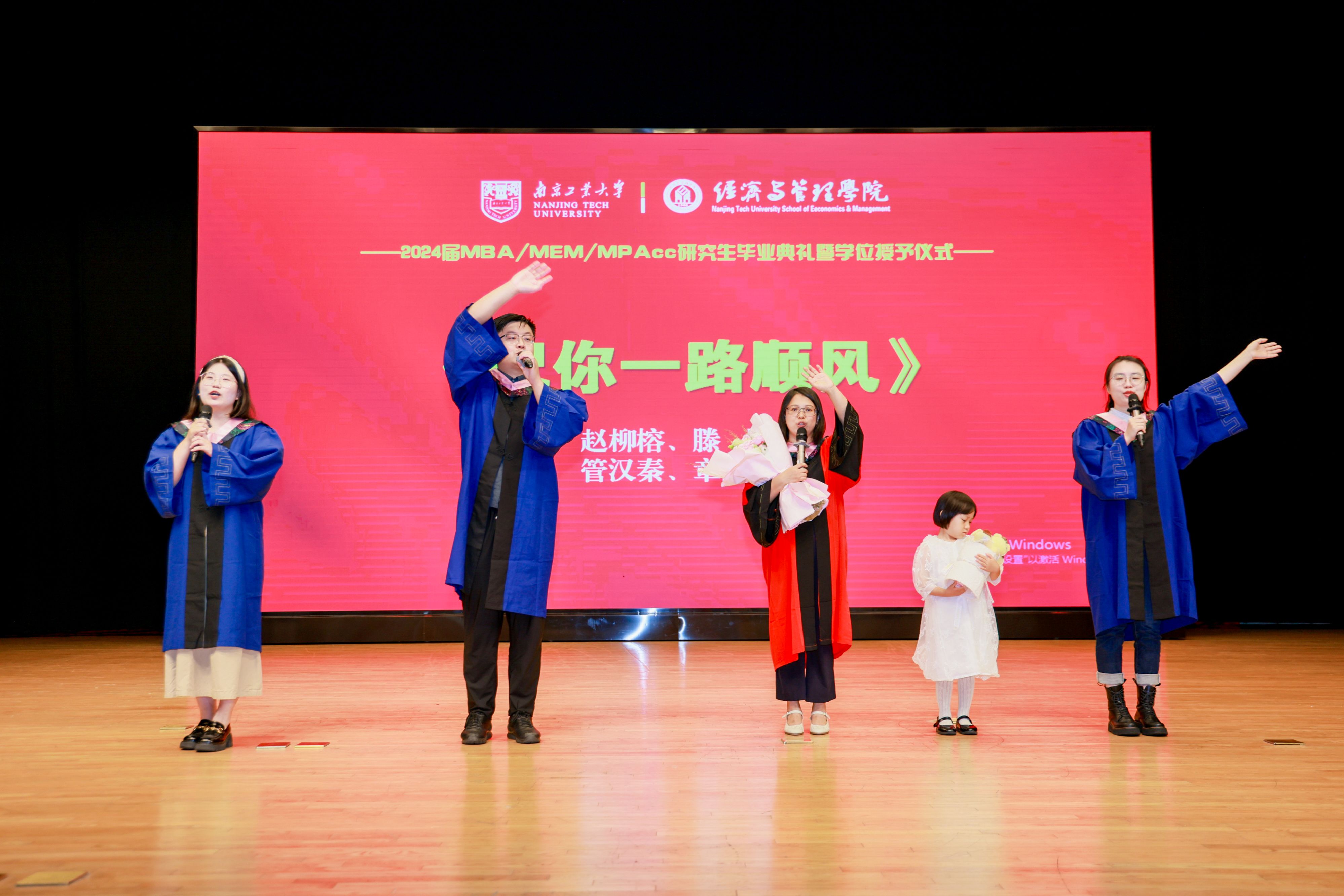 在毕业感言和毕业寄语环节,MBA、MEM、MPAcc联合会代表胡金龙回顾了三年来在母校所经历的学习、活动、赛事点滴,尤其难忘的是参加亚太地区商公司沙漠挑战赛夺得金沙鸥的经历,站在新的起点,相信毕业生们必将更有底气直面新的困难和挑战,不断前行;毕业生代表薛涛以《人力资源管理》、《市场营销》和《财务管理》课程为例分享了南工大MBA课程给自己带来的帮助和收获,向母校和老师们表达了敬意和感谢;MBA、MEM、MPAcc员工会秘书长袁京表示服务员工的三M员工会在公司和公司领导的关心下,在广大员工的支持下成立了三M员工活动基地和运动基地,在数个员工企业成立了研究生创新实践基地,并面向员工积极开展员工企业参访、读书会、各类交流活动,欢迎毕业生们积极向组织靠拢,大家一起继续交流学习、共创美好未来!导师代表赵柳榕老师温馨又贴心的导师寄语赢得了毕业生们的阵阵掌声。赵老师为同学们在两到三年读研过程中多线作战的辛苦而感动,为同学们学术钻研的热情和勇往直前的精神所折服。祝福大家在未来的日子里,心中有山海,眼眸有星辰,重逢时,见更深的智慧,更灿的笑容!