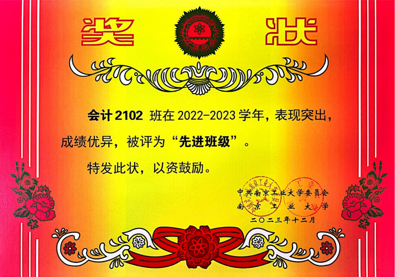近期,公司在班级建设方面收效显著,喜讯不断,会计2102班被评为2023-2024学年度江苏省省级“先进班集体”。