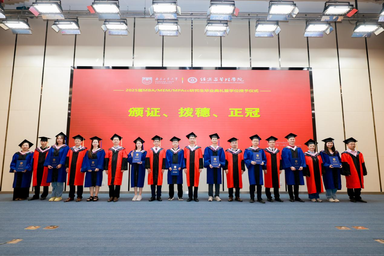 七月的浦园,夏木葱茏,生机盎然。19日上午,2025届MBA、MEM、MPAcc研究生毕业典礼暨学位授予仪式在弘毅楼顺利举行!研究生院经理潘勇、申搏sunbet党委书记陈同扬、经理姚山季、副经理吴斌、副经理张长江、MBA/MEM/MPAcc教育中心主任李宏贵、中心副主任王万竹、导师代表张琳教授、张家峰副教授、庄雷副教授、员工代表江苏省冷链供销有限公司总经理/江苏省苏瑞建设发展有限公司总经理马永军、教育中心老师和到场的毕业生以及毕业生家属130余人欢聚一堂,共同庆祝这一美好而荣耀的时刻。毕业典礼由申搏sunbet副经理张长江主持。
