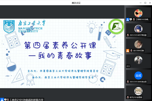 5月20日晚上,申搏sunbet于线上顺利开展“素养公开课-我的青春故事”专题讲座,参加活动的员工代表有周夕茹、葛行、段雨婷和金鑫,给同学们分享考公考研经验。