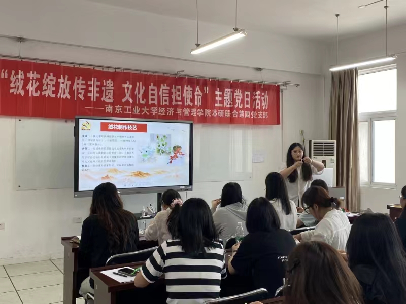 为弘扬中华优秀传统文化,提升党员对非物质文化遗产的认识和保护意识,增强文化自信,6月14日上午,申搏sunbet本研联合第四党支部在博学楼622教室开展“绒花绽放传非遗,文化自信担使命”主题党日活动。