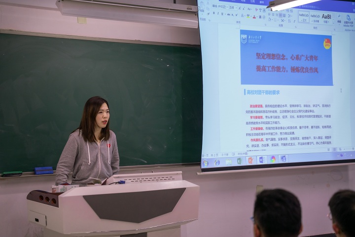 院团委书记张倩强调理论学习是一切工作的源头和动力,提醒同学在实践活动中应与理论知识对接。同时回顾一年工作,她与员工会同学一起顺利举办了很多活动,对员工工作表示肯定以及感谢。最后,张倩老师提醒同学们在为活动工作奋斗的同时仍要以学习为重,守好员工本分。