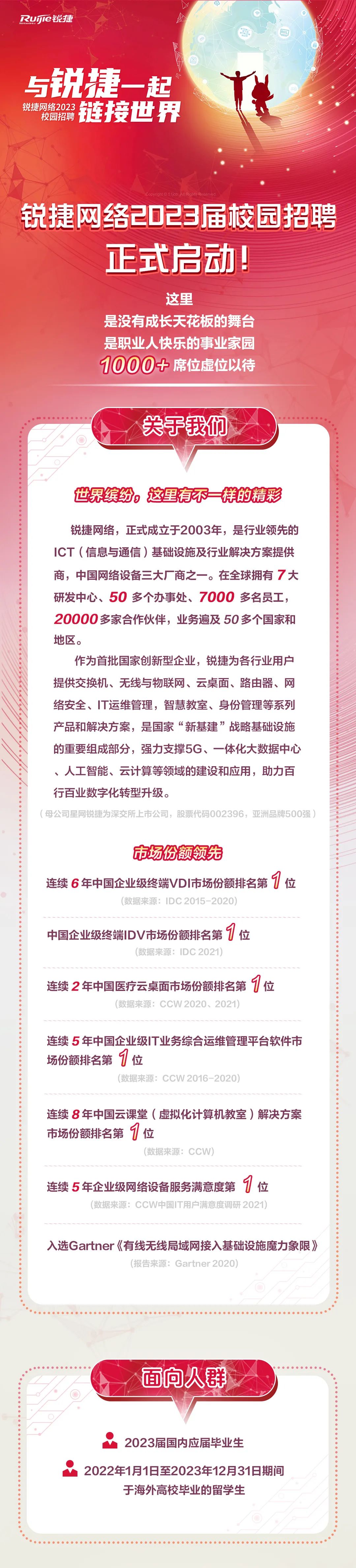 【2023职向未来】锐捷网络2023届秋季校园招聘正式启动!