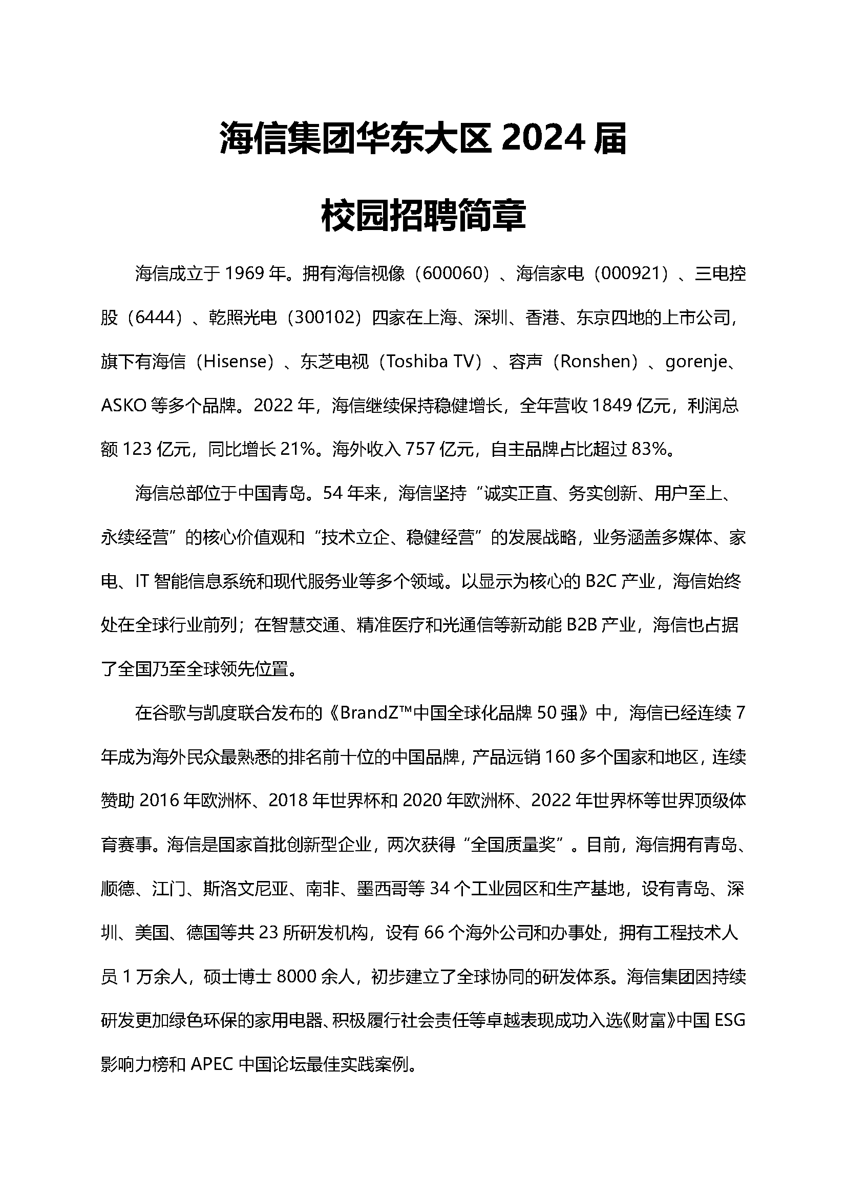 【2024职向未来】海信集团华东大区2024秋招(管理、财务、营销等)
