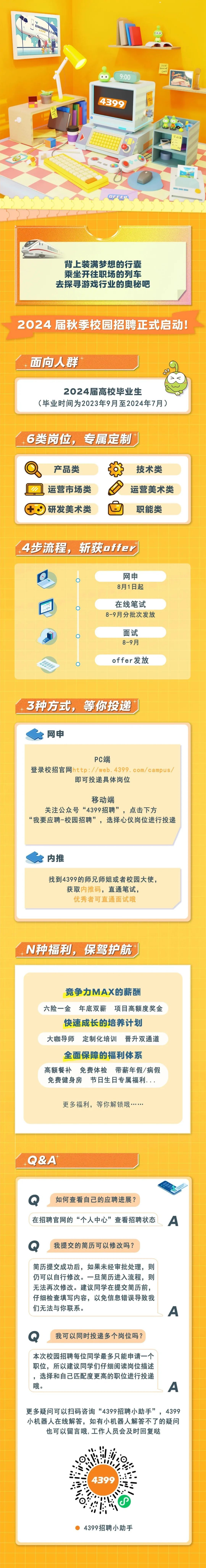 【2024职向未来】六险一金+年底双薪+多项福利!4399游戏2024届秋季招聘正式启动啦!