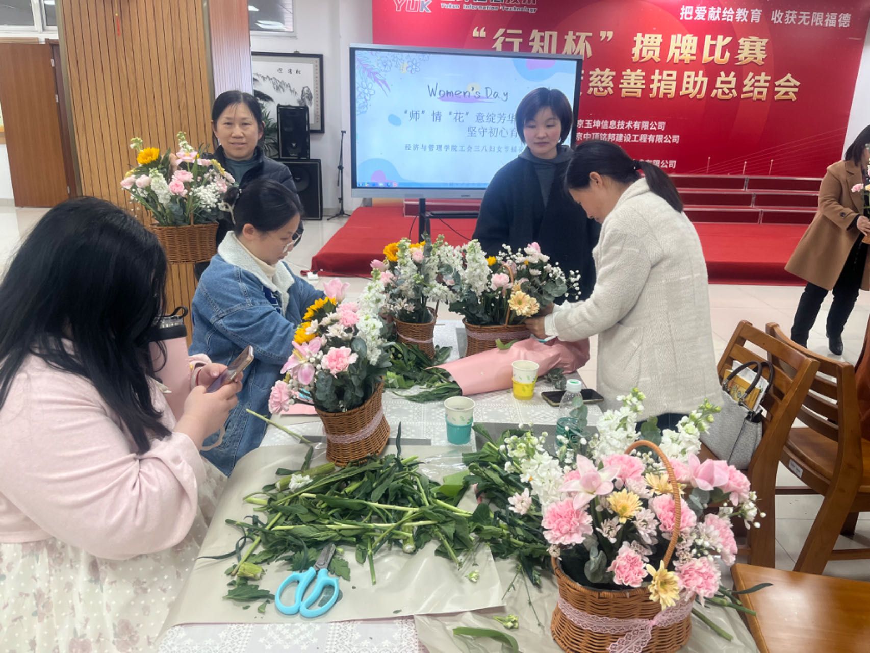 插花活动不仅提升了女老师们的审美情趣,还激发了大家对美的追求和对生活的热爱。活动结束后,大家捧着自己亲手制作的作品合影留念,记录下美丽的瞬间。